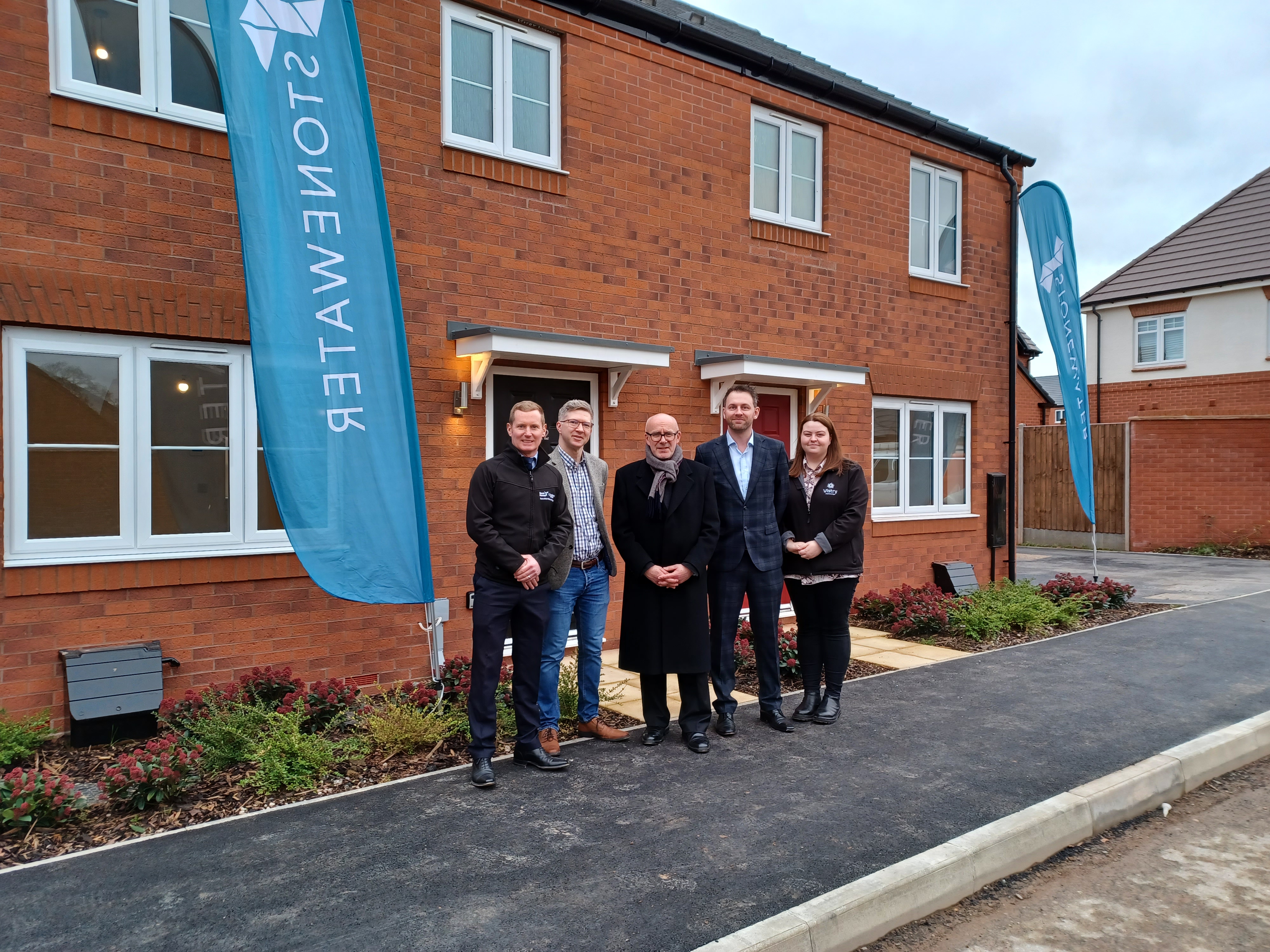 Representatives from Stonewater and its construction partner, Vistry Homes, met with Matt Western MP to view the progress of Regency Grange in Myton Green.